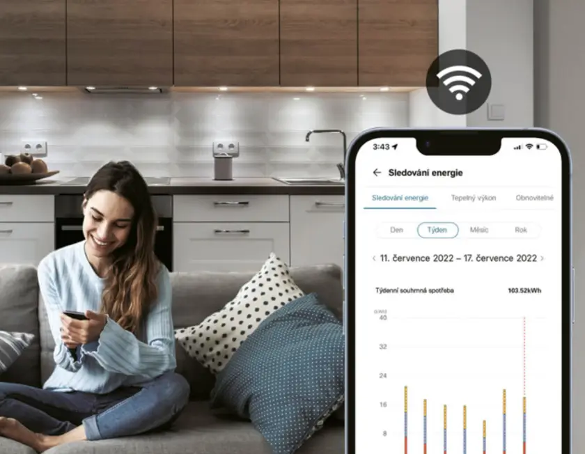 Aplikace pro chytré telefony LG ThinQ umožňuje uživatelům vzdáleně monitorovat a spravovat kompatibilní produkty LG, což znamená, že mohou kdykoli a kdekoli nastavit teplotu a regulovat používání svého tepelného čerpadla Therma V.
